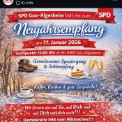 Bei ihrem Neujahrsspaziergang konnten die Mitglieder der SPD Gau-Algesheim bei strahlendem Sonnenschein Orte und Plätze in Gau-Algesheim besichtigen, an denen sich die aktuelle Entwicklung unserer Stadt besonders deutlich zeigt. Unter anderem wurden das Neubaugebiet in der Eichenbach, aber auch mögliche KiTa-Standorte in Augenschein genommen. Diskutiert wurde auch über Straßen und Verkehr. Der Spaziergang endete bei Kaffee und Kuchen. Ein gelungener Nachmittag!