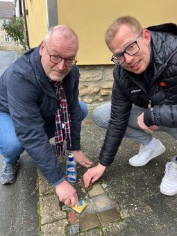Am 9. November 1938 brannten in Deutschland die Synagogen, Geschäfte und Wohnungen jüdischer Mitbürger wurden von den Nazis verwüstet. Am 9 November 2025, dem Tag des Gedenkens an die Opfer des Holocaust reinigten der 1. Beigeordnete Rolf Meier und Stadtratsmitglied Jonah Klaus die Stolpersteine im Gau-Algesheimer Stadtgebiet. „Wir wollen auch dadurch das Erinnern wachhalten und dem leider wieder wachsenden Antisemitismus entgegentreten“ so Rolf Meier und Jonah Klaus. Begleitet wurden sie vom Landtagskandidaten Sebastian Hamann.